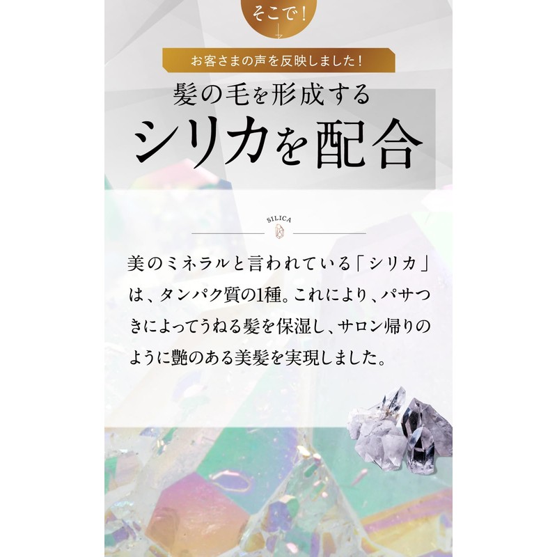 - All-in-one shampoo with 6-in-1: This all-in-1 shampoo is perfect for cuticle repair, gloss and volume, scalp care, no conditioner required, static and dry-prevention prevention and damage repair. Aging hair care* is complete with one piece. *Care for Ages: A beautiful crystal "Silica" formula: A combination of silica which is said to be a mineral of beauty. It is a kind of precious protein to support the beauty of women. Supports keratin with silica to give you a beautiful, glossy and curly hair that everyone will want to turn heads