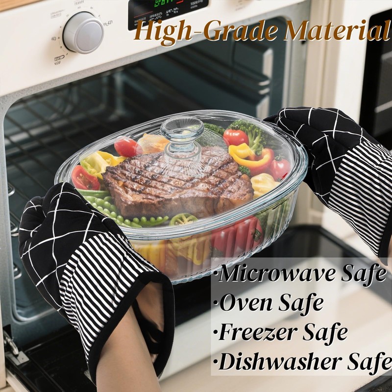 - Convenient & Thoughtful Design: Wide handles of our heat-resistant covered casserole cookware, provide a secure grip for carrying to the table. The glass lid seals in heat and moisture while cooking. Its top knob ensures easy lifting, and the clear design allows monitoring without removing the lid, keeping food moist.