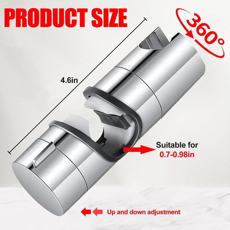 2. Der Durchmesser des drehbar duschkopfhalterung-Schlitzes lässt sich beliebig zwischen 18 und 25 mm einstellen, sodass keine Inkompatibilitäten auftreten. Der shower head holder-Schlitz ist mit einem Harzschutzpolster ausgestattet, um Kratzer an der Duschstange zu vermeiden und gleichzeitig sicher zu befestigen.