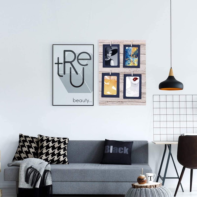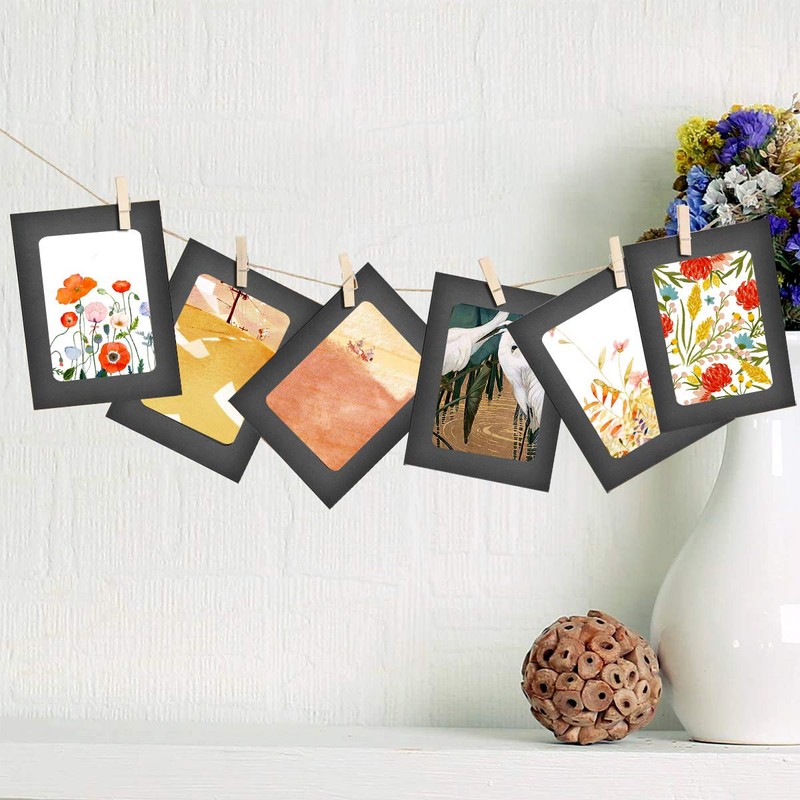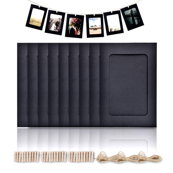 NOBBEE Paper Photo Frame 4x6 Kraft Paper Picture Frames 30 PCS DIY Cardboard Photo Frames with Wood Clips and Jute Twine (4x6 Inch 30 PCS, Black)