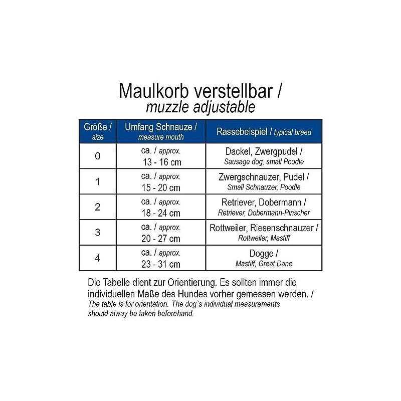 - For breeds such as Danish Great Danes, etc. Snout circumference approx. 23 - 31 cm