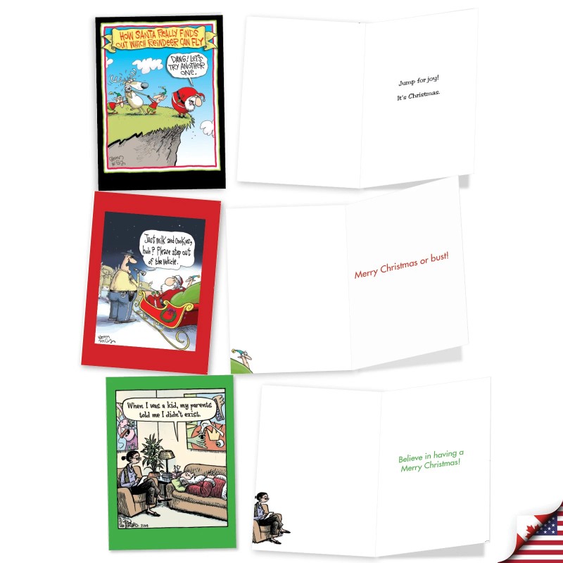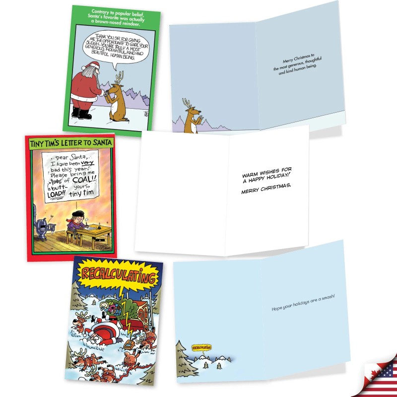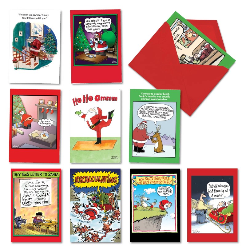 Nobleworks 10 Assorted set Funny Christmas Greeting Cards w/Env. - Santa's Coming To Town