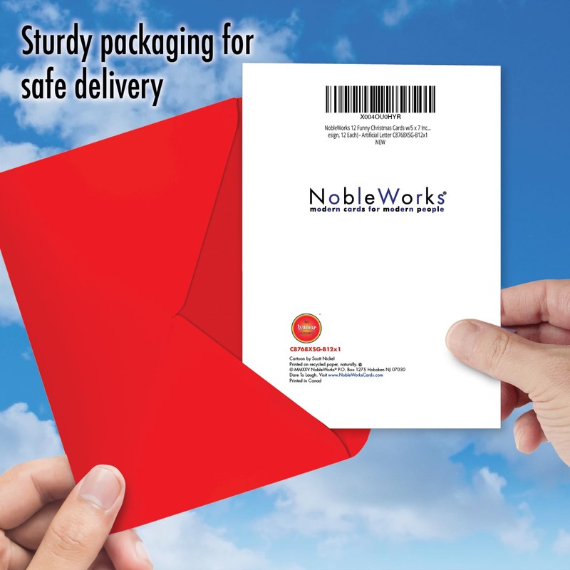 NobleWorks 12 Funny Christmas Cards w/5 x 7 Inch Envelopes (1 Design, 12 Each) - Artificial Letter C8768XSG-B12x1