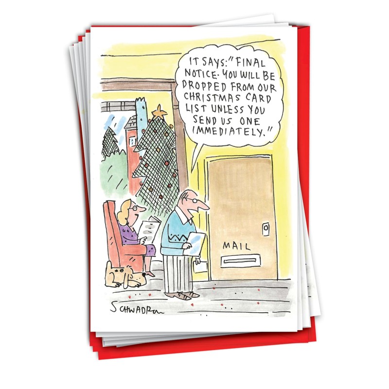 NobleWorks 12 Funny Christmas Cards w/5 x 7 Inch Envelopes (1 Design, 12 Each) - Final Notice C8744XSG-B12x1
