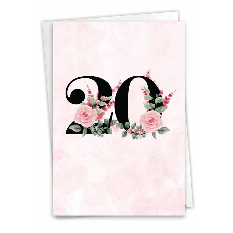 NobleWorks - 20th Milestone Anniversary Paper Card with 5 x 7 Inch Envelope (1 Card) Floral Couple 20 C10491MAG