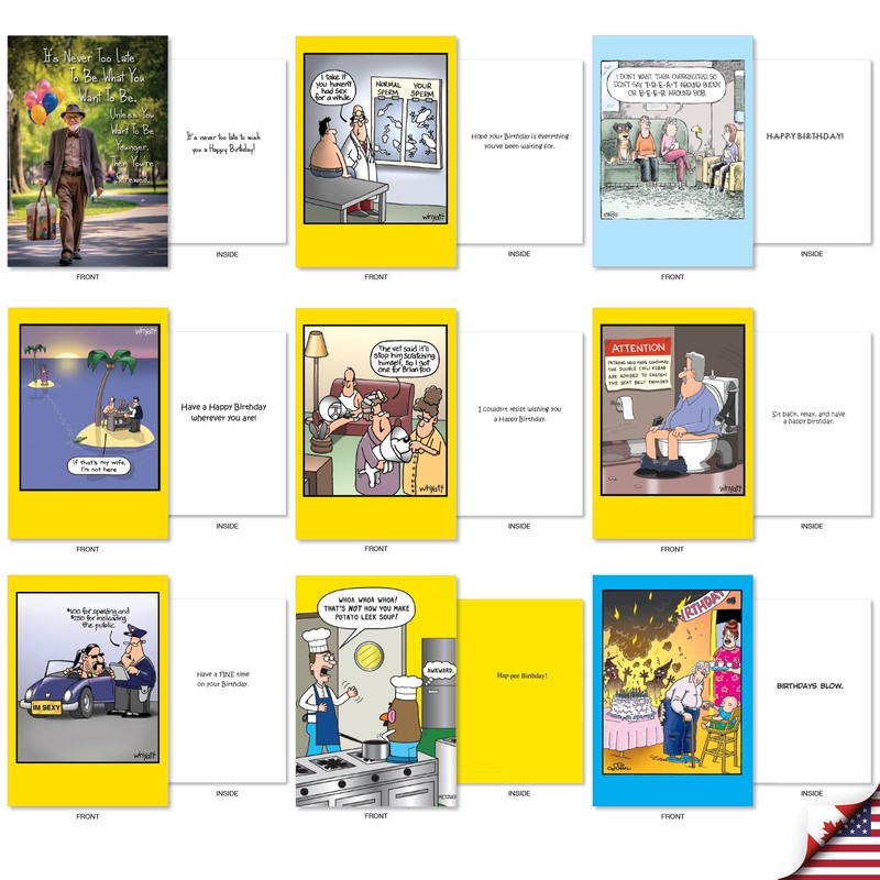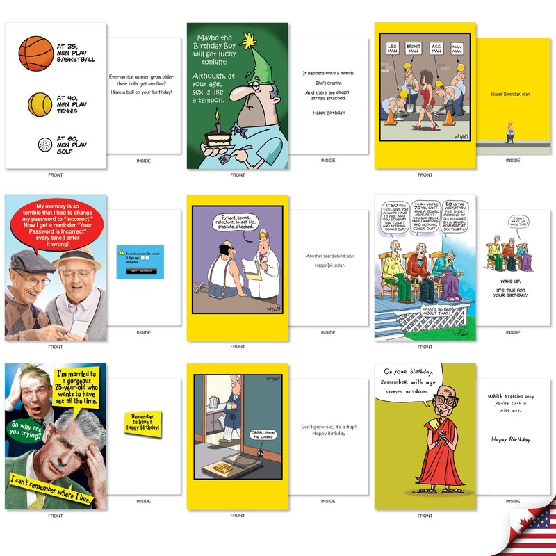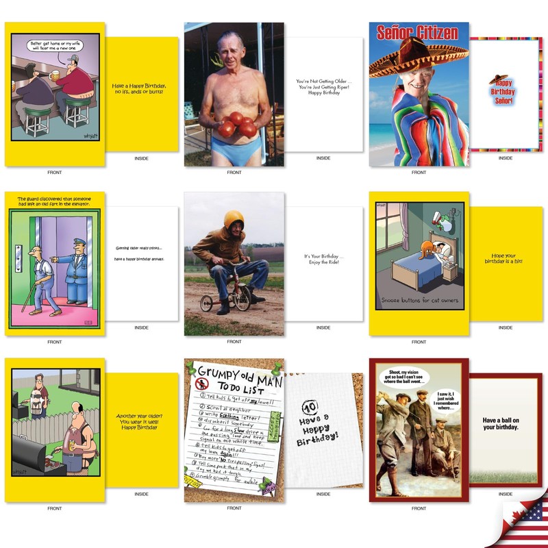 NobleWorks 36 Assorted Box Set Birthday Greeting Cards w/5 x 7 Inch Envelopes (36 Designs, 1 Each) Bday Funny Men AC10616BDG-B1x36