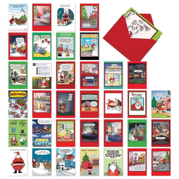 NobleWorks 36 Assorted Box Set Hysterical Christmas Greeting Cards w/5 x 7 Inch Envelopes (36 Designs, 1 Each) Santa Laughs AC10020XSG-B1x36
