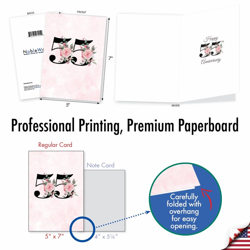 NobleWorks - 55th Milestone Anniversary Congratulations Notecard w/ 5 x 7 Envelope for Men and Women (1 Card) Floral Couple 55 C8256MAG