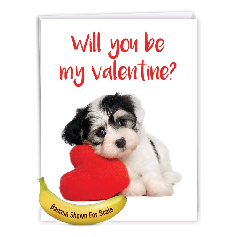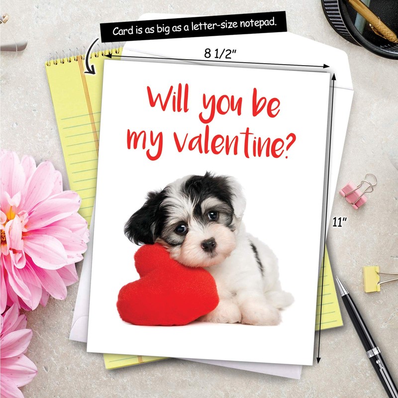 NobleWorks, Big Animal Valentines Card with Envelope (8.5 x 11 Inch) - Jumbo Notecard for Valentine's Day - Puppy Heart J3470VDG
