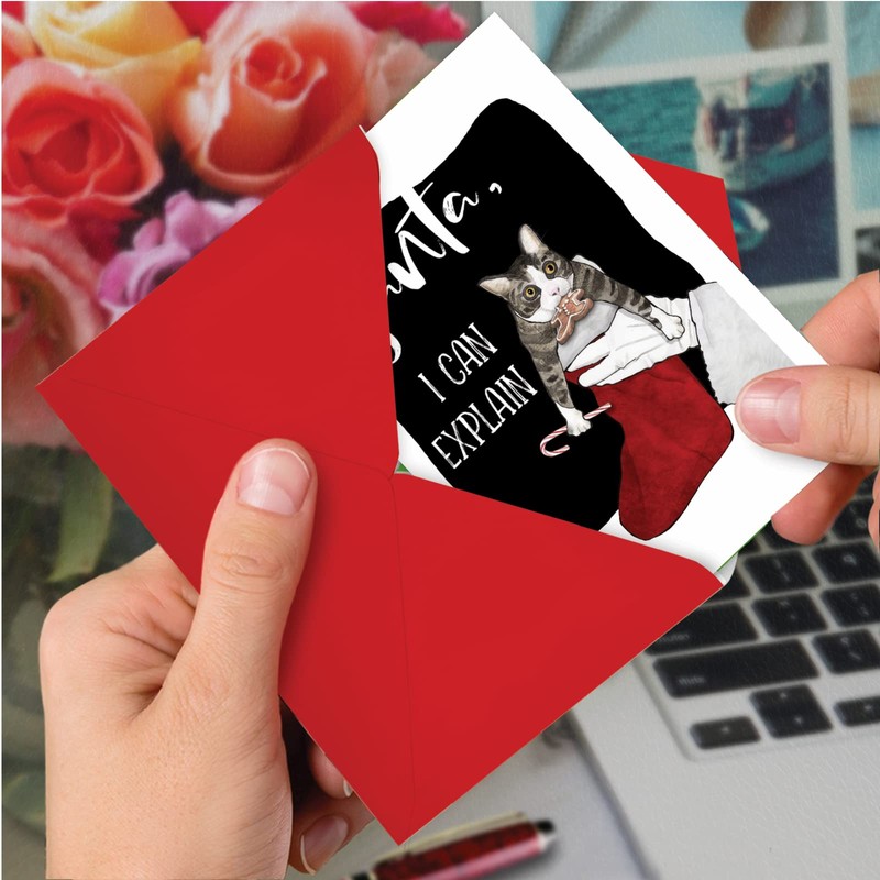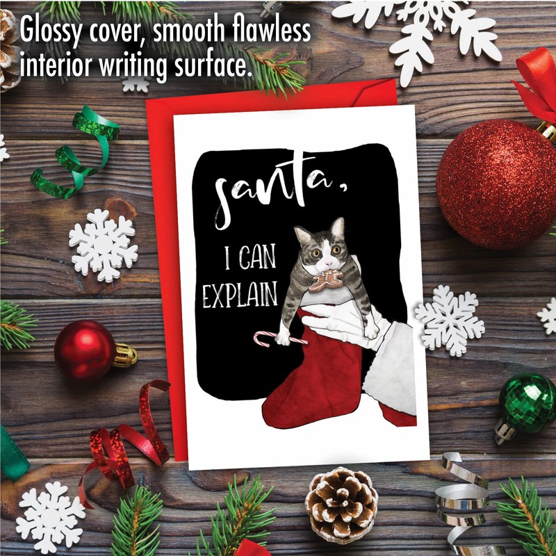 NobleWorks, Cat Explanation - Humor Christmas Card with Envelope - Silly Kitten Design, Xmas Stationery Greeting Card C3463XSG