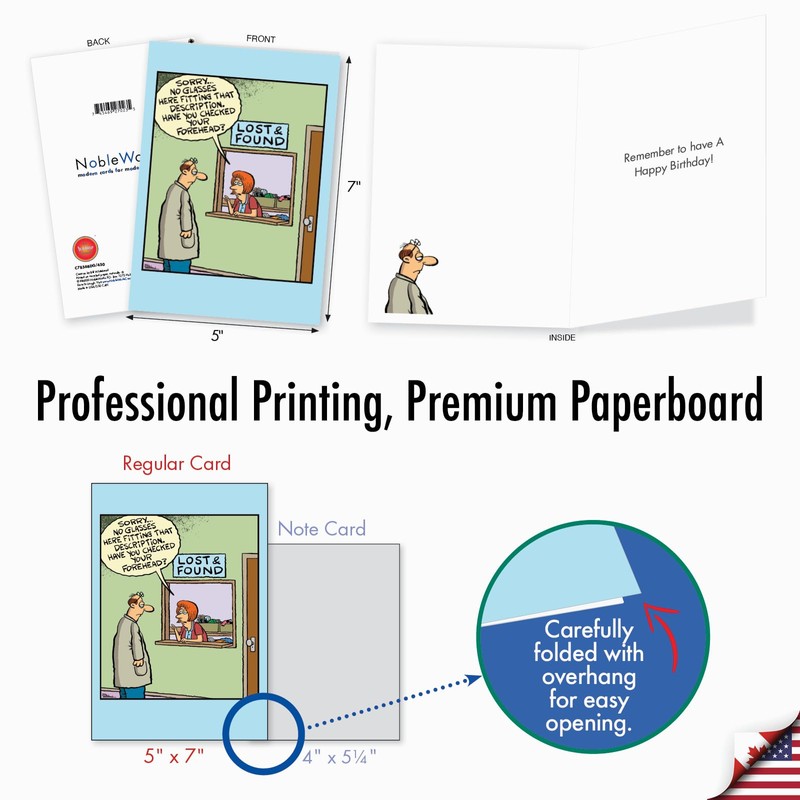 Whether you're looking for 5x7 inch greeting cards with envelopes, boxed note card assortments, or an 8.5” x 11" jumbo card that’ll make a HUGE impression, NobleWorks – and The Best Card Company (our non-humor brand) – has the right card for you! No matter which fold over greeting card you choose, we strive for perfection and customer satisfaction – every card, every order, every time!