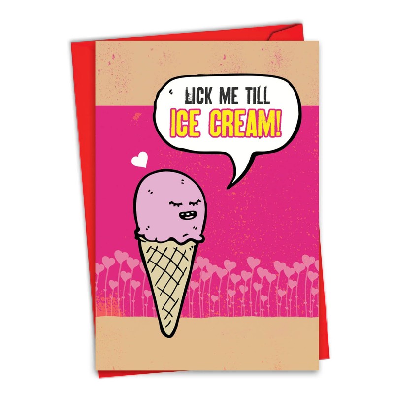 NobleWorks - Funny Valentine's Day Card - Humor for Valentine, Notecard with Envelope (1 Card) - Ice Cream 2219