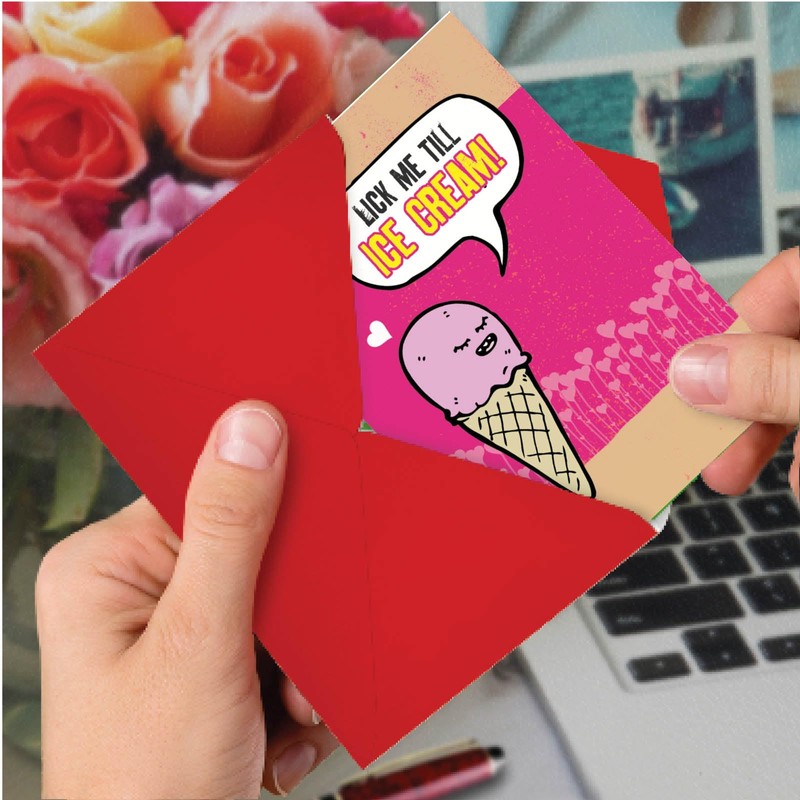 - INSIDE GREETING: "You Make Me Melt. Happy Valentine's Day" COVER - Lick Me Till Ice Cream!