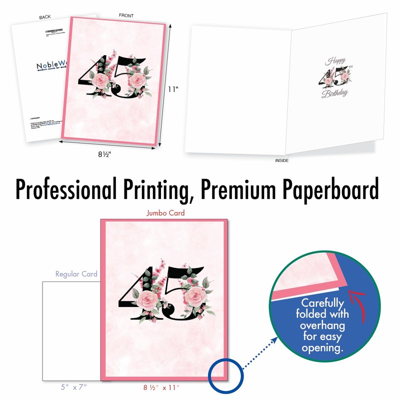 NobleWorks Oversize 45th Milestone Birthday Greeting Card 8.5 x 11 Inch with Envelope (1 Pack) Large Jumbo Floral Age 45 J10050MBG