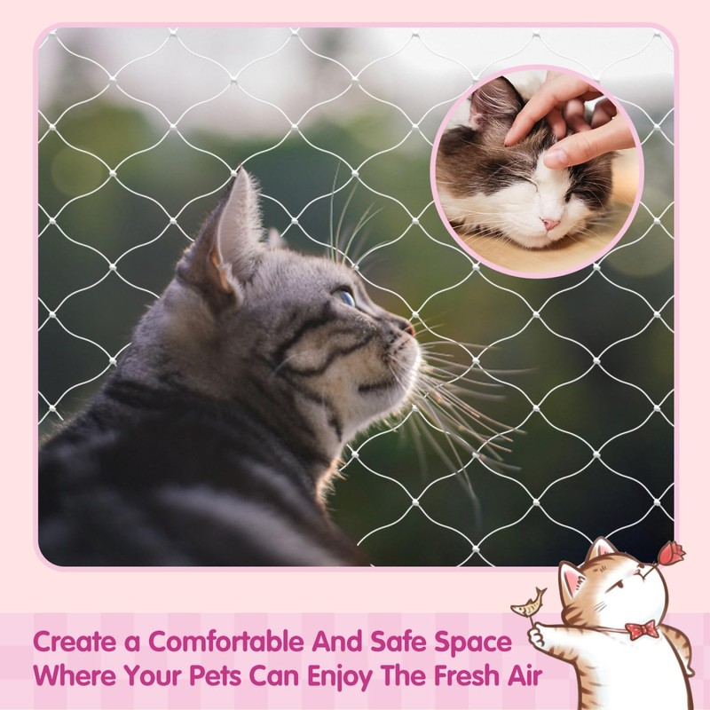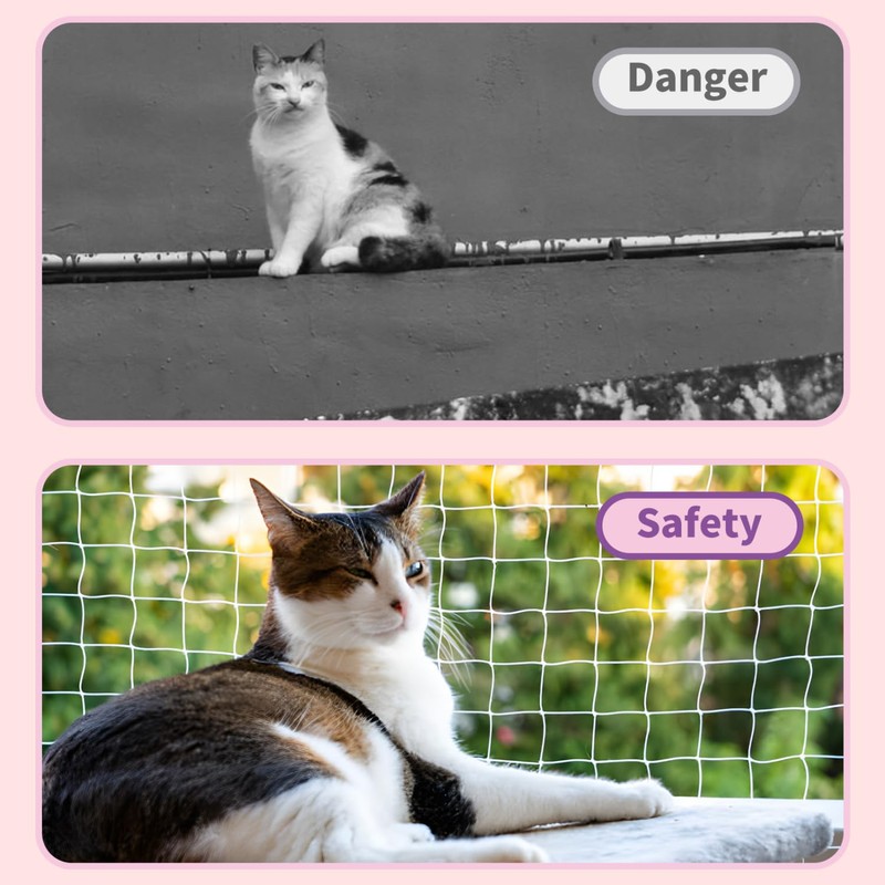 - Safety: This cat balcony net is made of high-quality UV-resistant and weather-resistant nylon and is suitable for balconies, patios, windows, etc. The cat safety net is bite-resistant and durable, ensuring the safety of your cat.