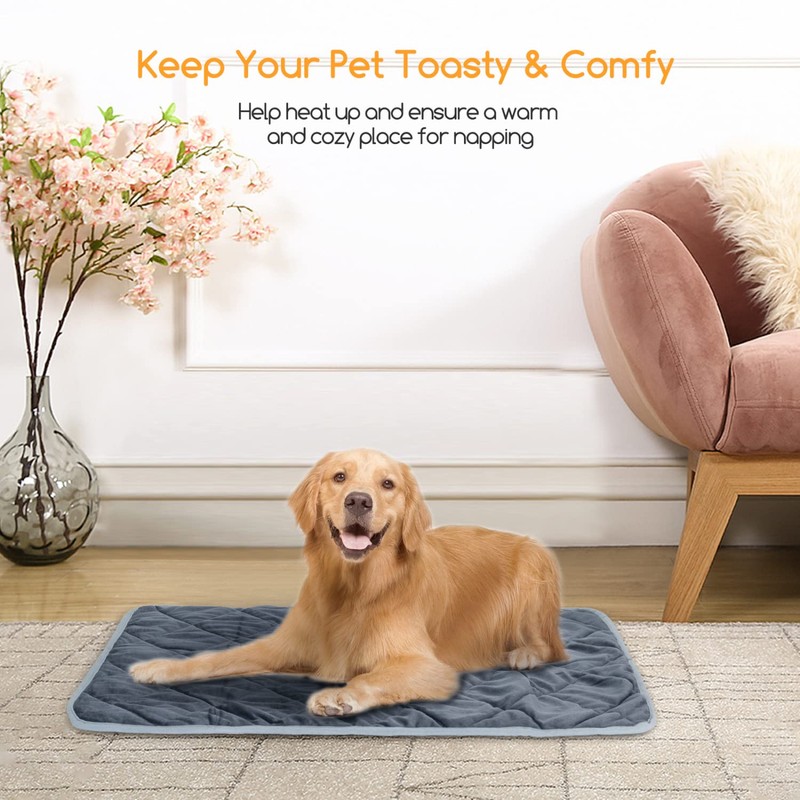- Safe Self-Heating. No plug or electricity required! Safe use, save worries. The self heating pet pad reflects and retains your pet’s body heat to make them warm and comfy. The thermal cat dog bed will effectively keep warm in cold days.