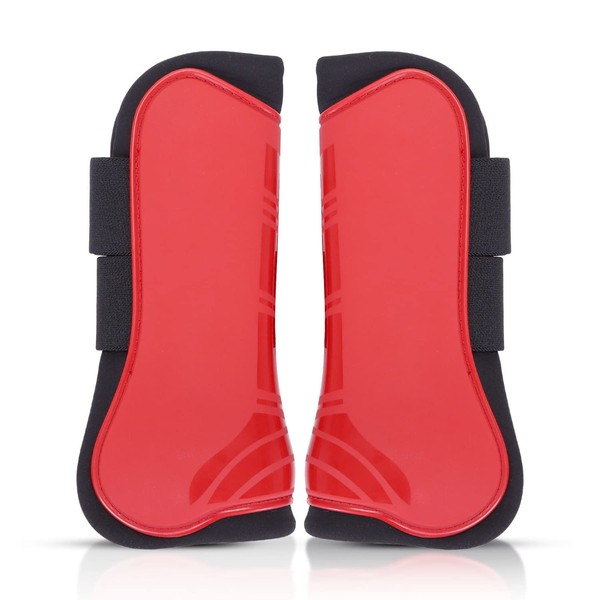 Nobleza Tendon Boots Protective Horse Boots Double Velcro Over Locking Closure, Lightweight Open Front Boots for Jumping, Trail Riding, and Turnout, Red.