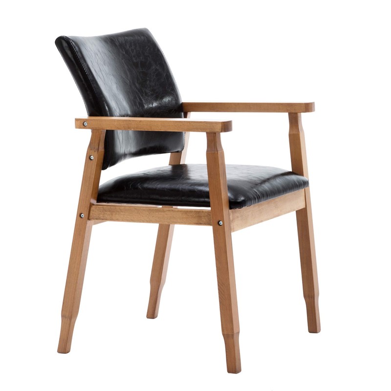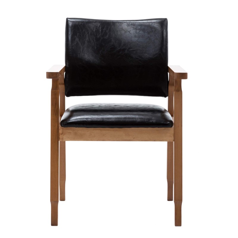 NOBPEINT Mid-Century Dining Side Chair with Faux Leather Seat in Black, Arm Chair in Walnut,Set of 2
