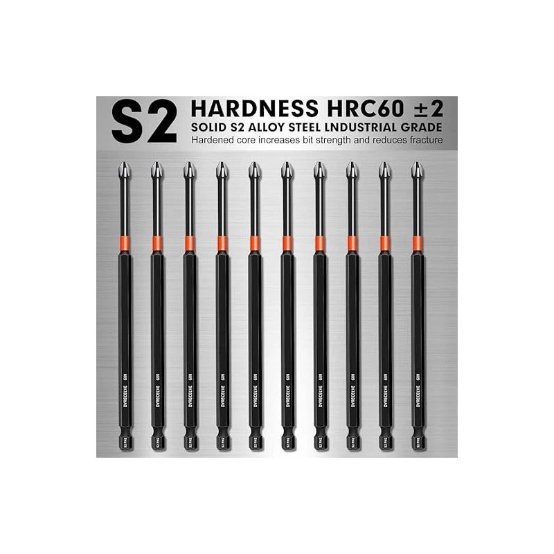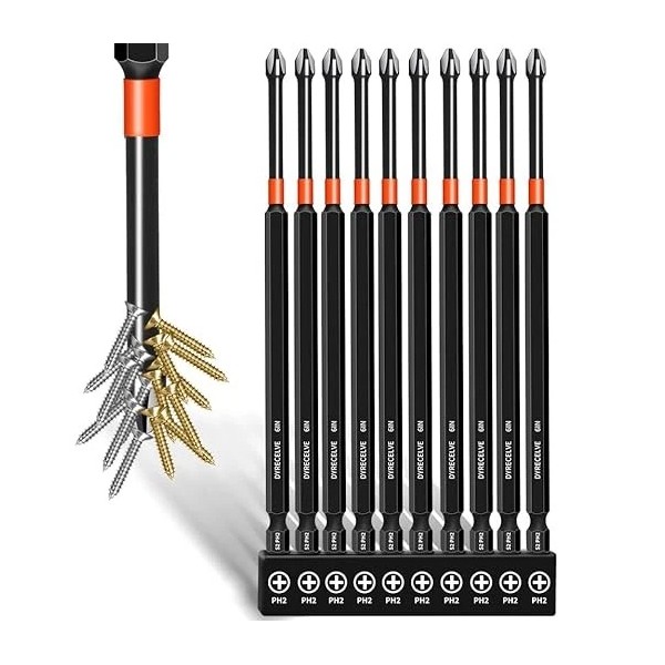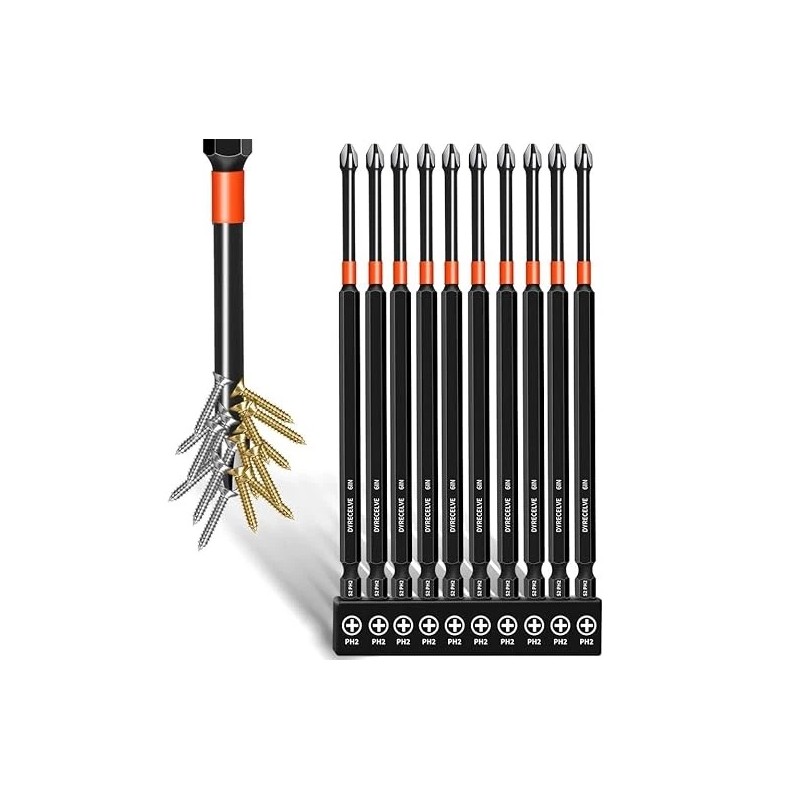 NoBrand 10-Pack Bits #2 Impact, 6-Inch Long Magnetic Head Drill - 6'' Ph2 10-pcs
