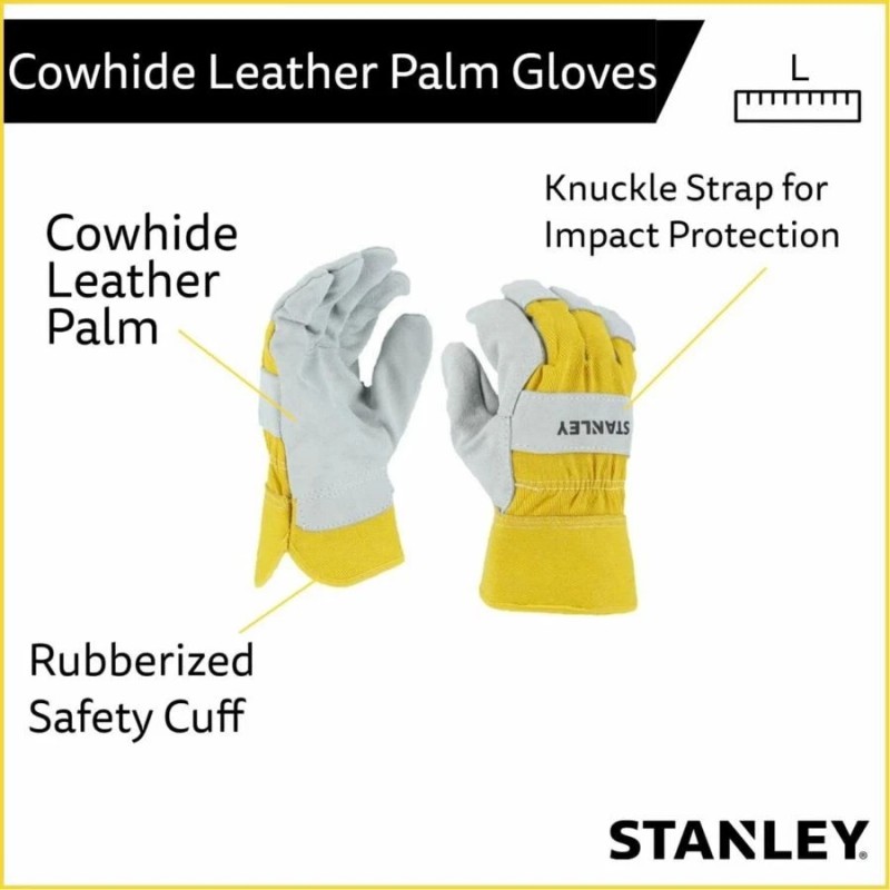 NoBrand Cowhide Split Leather Palm Work and Safety Gloves - Yellow Canvas Back - Larg
