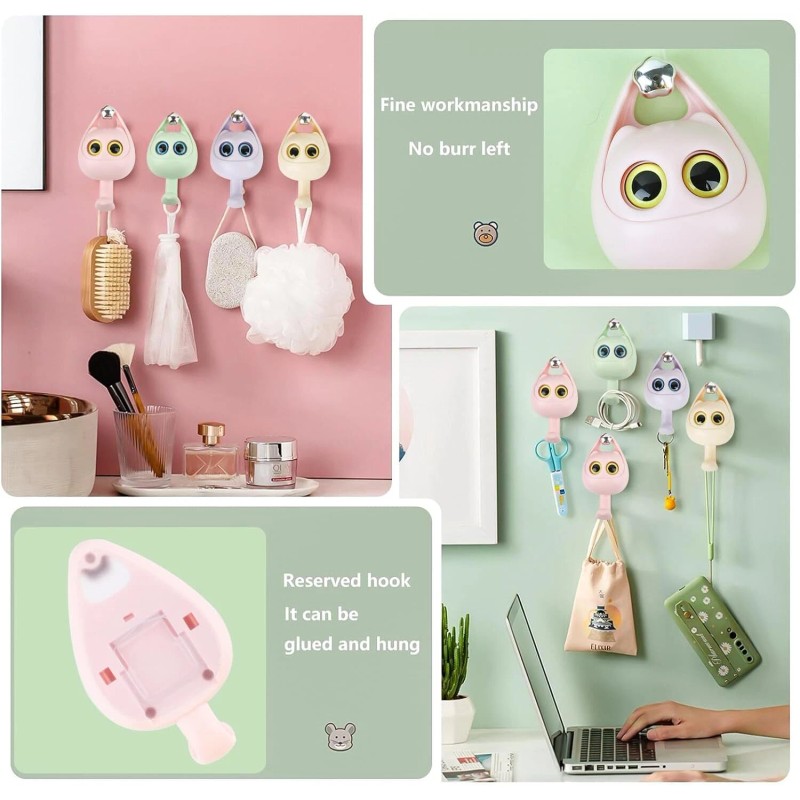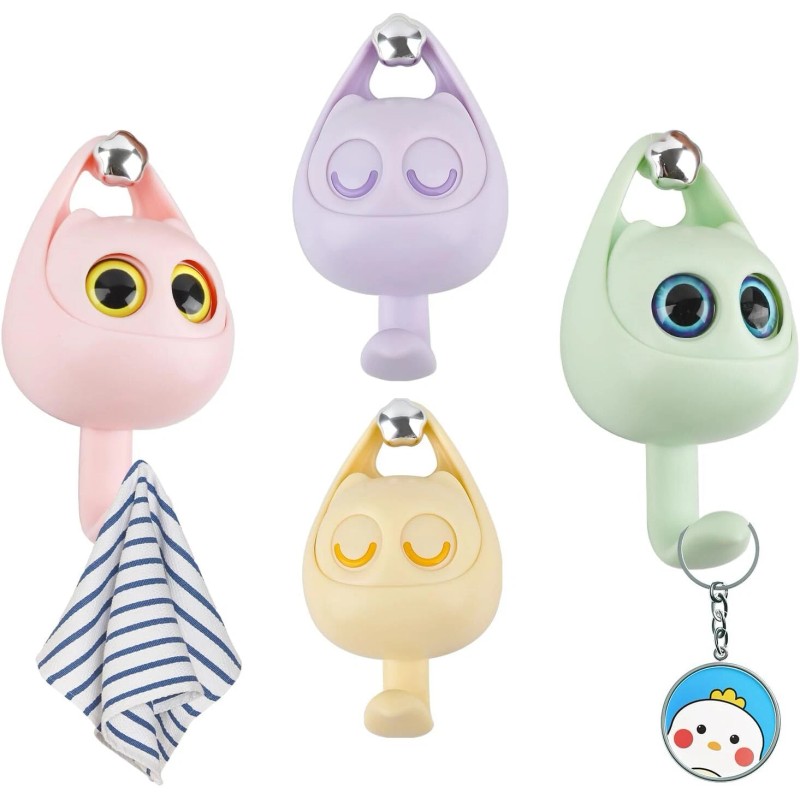 NoBrand Cute Key Hook, 4Pcs Wink Hook Creative Adhesive Coat Hook, Wall Mounted Hook for