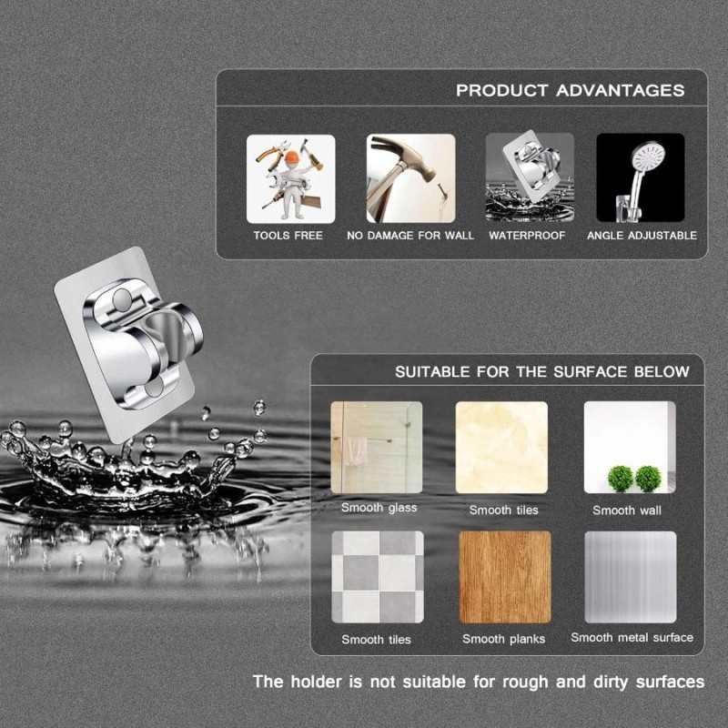 NoBrand Wall Mount Adhesive Adjustable Handheld Shower Holder No Drilling Shower Head Br