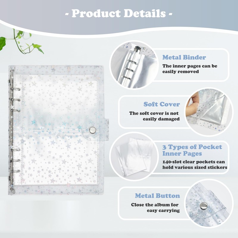 NOCAFI Sticker Organizer Binder Reusable Sticker Storage Book Collecting Albu...