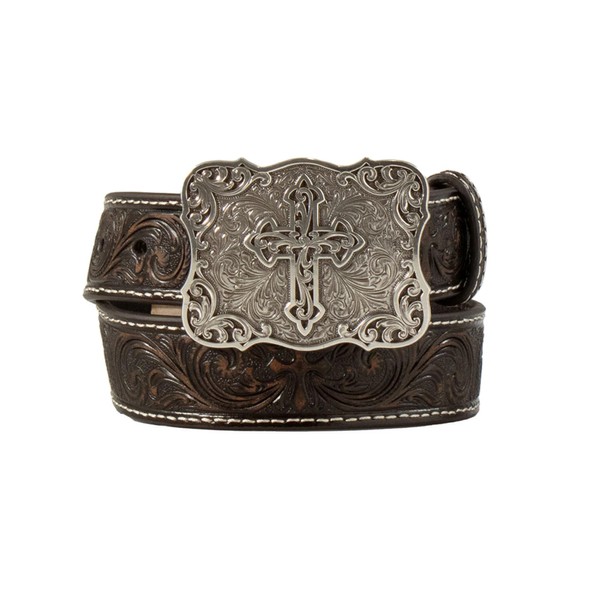 Nocona Girl's Scrolling Cross Leather Belt, Brown, Size 24
