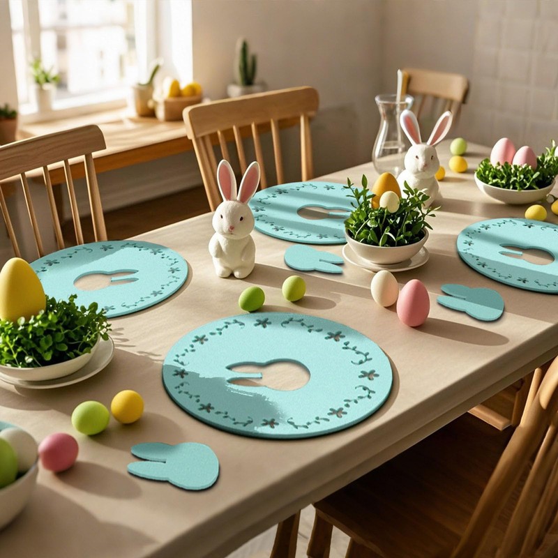- Material & Complete Set: Premium polyester felt Easter place mats(6 pieces)flat-packed in a storage box