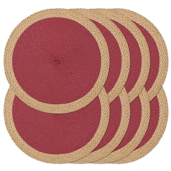 Noctiflorous Round Braided Placemats Set of 8 Table Mats 15 Inches Washable Heat Resistant for Dining Table Non-Slip Indoor Outdoor Place Mats for Thanksgiving Christmas Easter(Red Wide Edge 8)