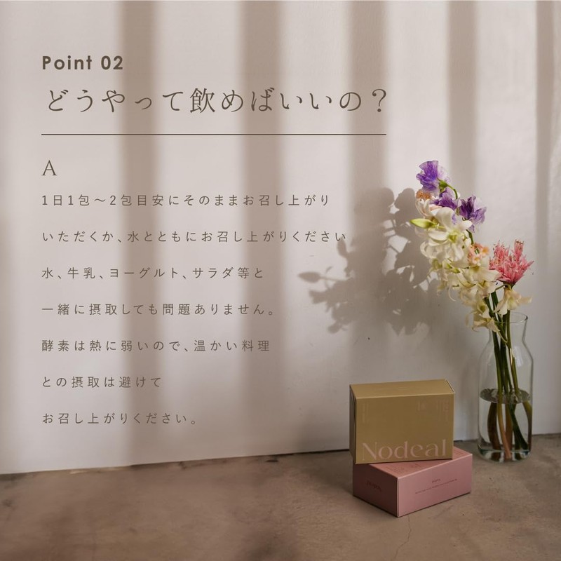 - 【ブランドコンセプト】 「 Nodeal 」ノディール No (わたしの) ideal(理想) 明日の自分を好きになる 歳を重ねていくごとに増えていく女性の悩みを内側からケアする。 今より、明日の自分が好きになれるように、頑張る女性をサポートする。