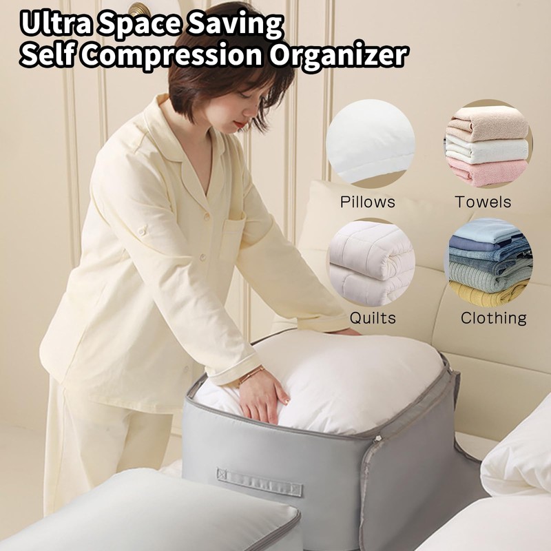 Ultra Space Saving Self Compression Organiser, Ultra Space Saving Self-Compressing Organiser, 52 x 42 x 60 cm for Duvets, Clothes, Blankets, Save 80% Space