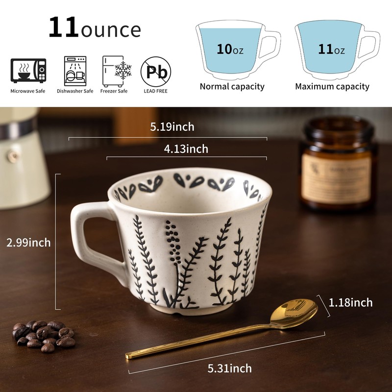 - Each cup is hand-painted! The surface is plant-carved, the irregular design is unique, and there are a variety of patterns and colors to choose from. It is a perfect gift for anyone.
