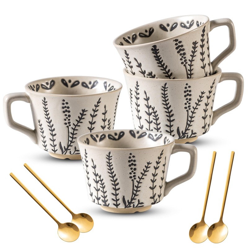 - Premium 4 Piece Mug Set — 11 ounce mug with spoon for your morning coffee or daily need, which is great for serving your favorite beverages.
