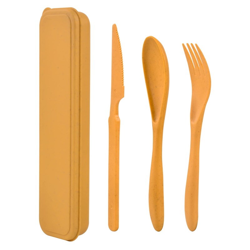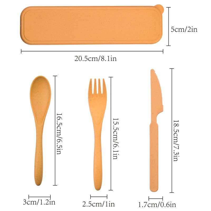 - Package includes: 1 set of travel utensils with yellow. You will receive 1 dinner knife, 1 dinner fork, 1 dinner spoon, and comes with a durable plastic storage box.