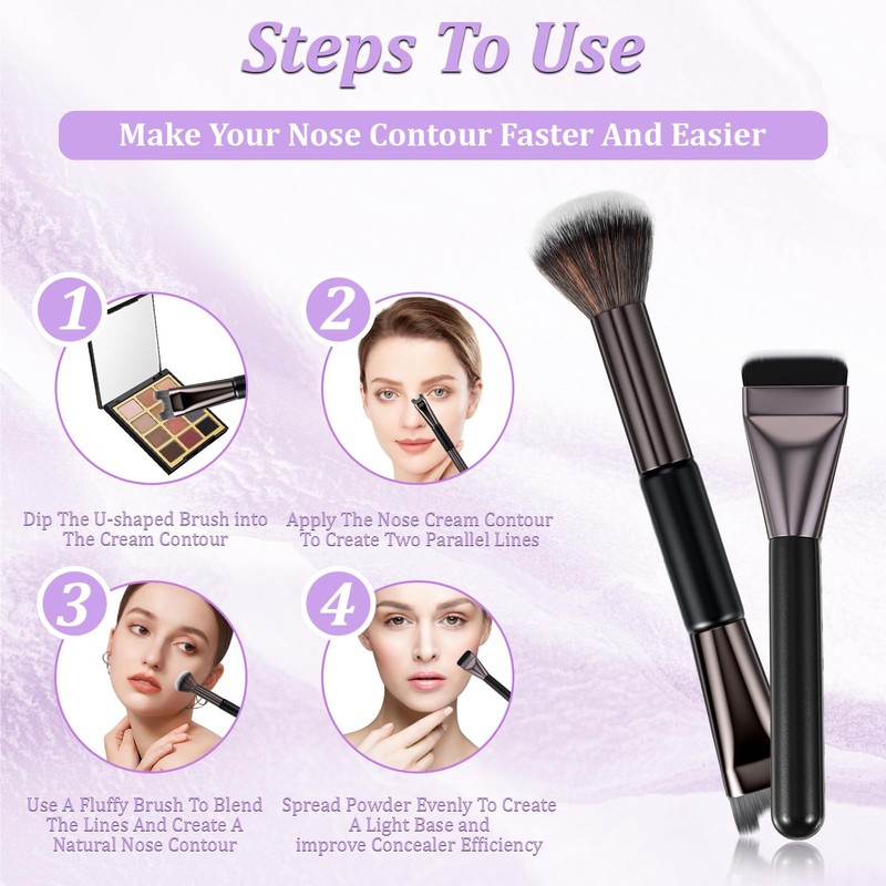 • 【Nose Contour Brush】Our nose contour brush is designed to fit the curves of your nose, providing precise application and blending for a natural look. Perfect for contouring the jawline and cheekbones.
