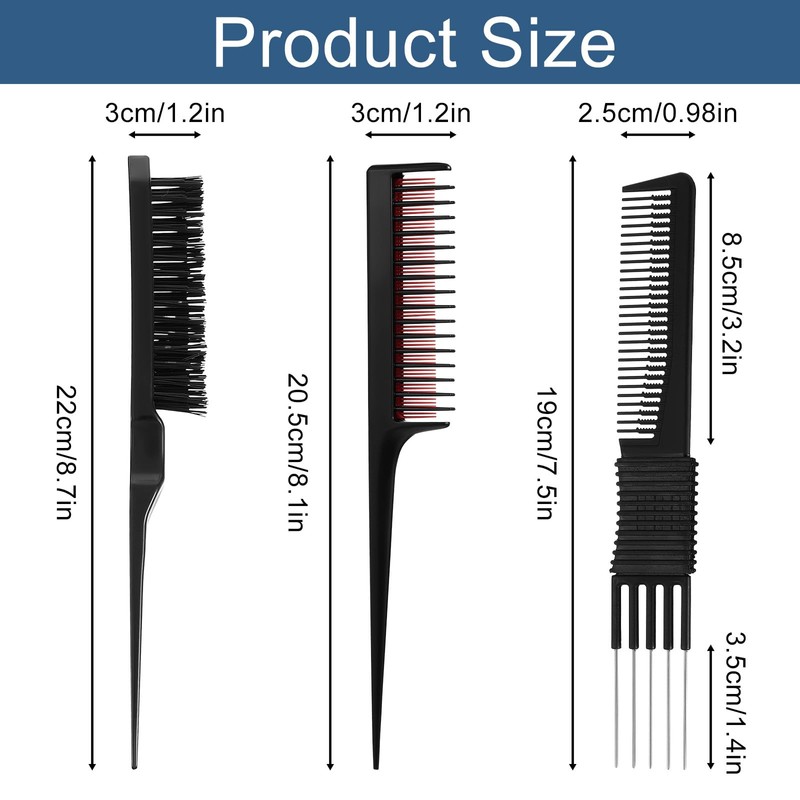 - Precision Sectioning: The teasing brush designed with a slim steel pintail suitable for quick hair parting, this comb set can give you the fluffy hair you want