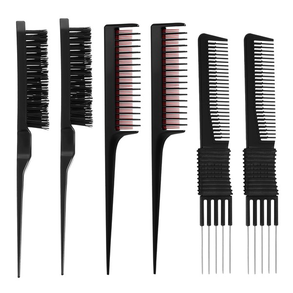 Nogeqi 6 Pieces Teasing Comb for Women Teasing Brush Rat Tail Comb with Metal Pick for Parting Styling Three Row Teaser Brush Set for Fine Hair Stylist