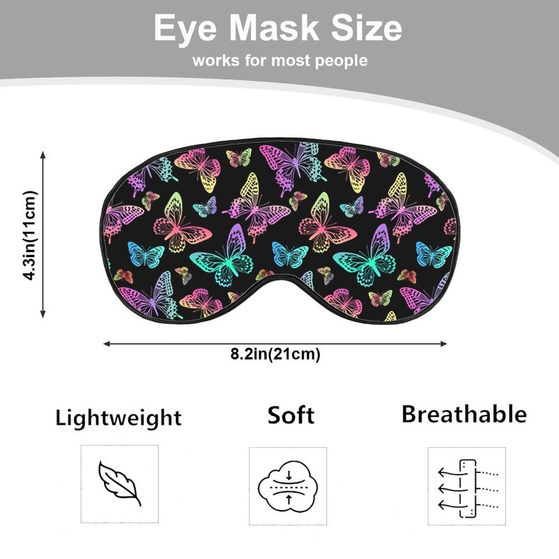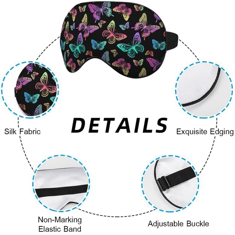 - 【Product Size】: Colorful Butterflies silk sleep mask measures 8.2" x 4.3" with modified adjustable buckle. The elastic straps is light and easy to adjust suitable for most men and women, ensuring a snug fit.