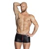 NOIR HANDMADE, H028-M, Men - Kunstleder Shorts mit rotem Zipper und roten Ziernähten, schwarz