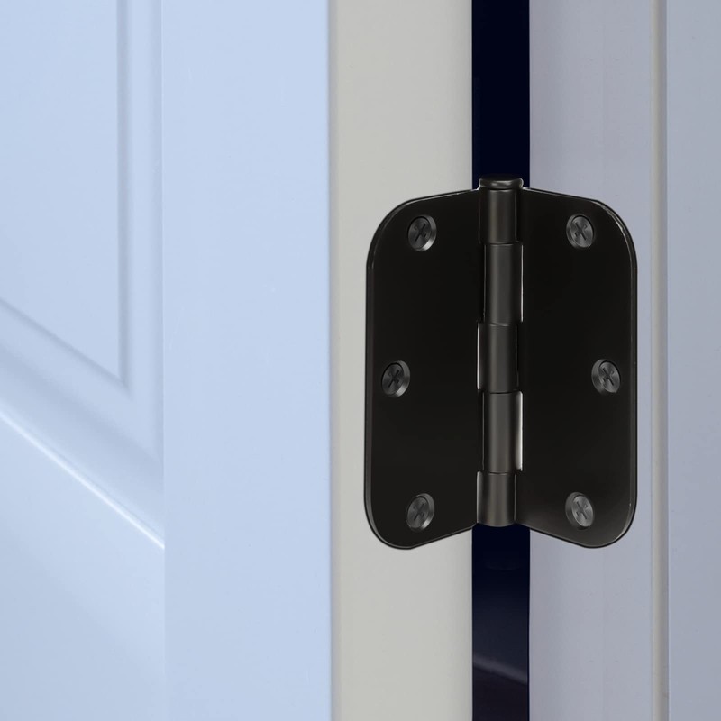 Noise-Free Interior Door Hinges Matt Black 3.5 Inch with 5/8" Radius Corner Black Steel Removable Pin, 24 Pack