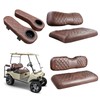 - Golf Cart Front&Rear Seat Covers with Armrest kit (Brown&Brown 8438) : Specifically designed for Club Car DS 2000.5-Up golf carts, the same color series combination matching kit saves time and effort. The exquisite double-stitched rhombus pattern design enhances the overall aesthetic appeal of the seat. This is definitely the best choice for you to update the seats of your golf cart!