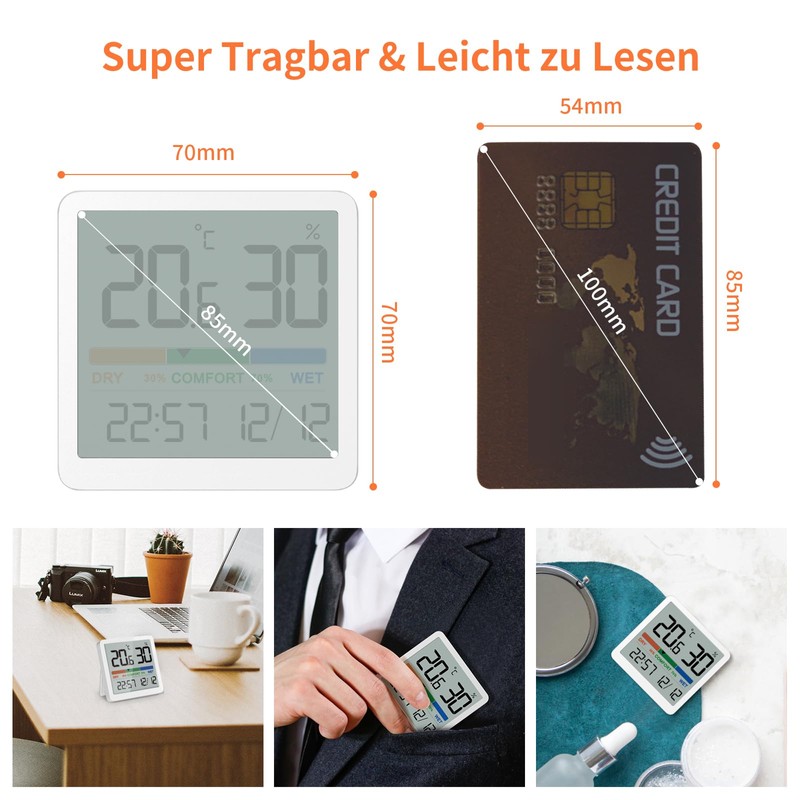 - 𝐋𝐞𝐢𝐜𝐡𝐭 𝐚𝐛𝐥𝐞𝐬𝐛𝐚𝐫 𝐦𝐢𝐭 𝐠𝐫𝐨ß𝐞𝐧 𝐙𝐢𝐟𝐟𝐞𝐫𝐧:Mit großem LCD-Bildschirm, das Hygrometer Luftfeuchtigkeit Display große Zahlen, die Sie leicht lesen können, auch aus der Ferne. Der ℃/℉-Schalter auf der Rückseite gibt Ihnen mehr Freiheit, Grad Celsius oder Grad Fahrenheit zu wählen, die Sie benötigen.Als zuverlässige Marke bieten wir den sorgenfreien Produktservice für Sie. Keine Arbeit gut? Kontaktieren Sie uns für kostenlose Garantie! Sie werden sich erleichtert fühlen, dieses großartige Produkt für die nächsten Jahre zu verwenden!