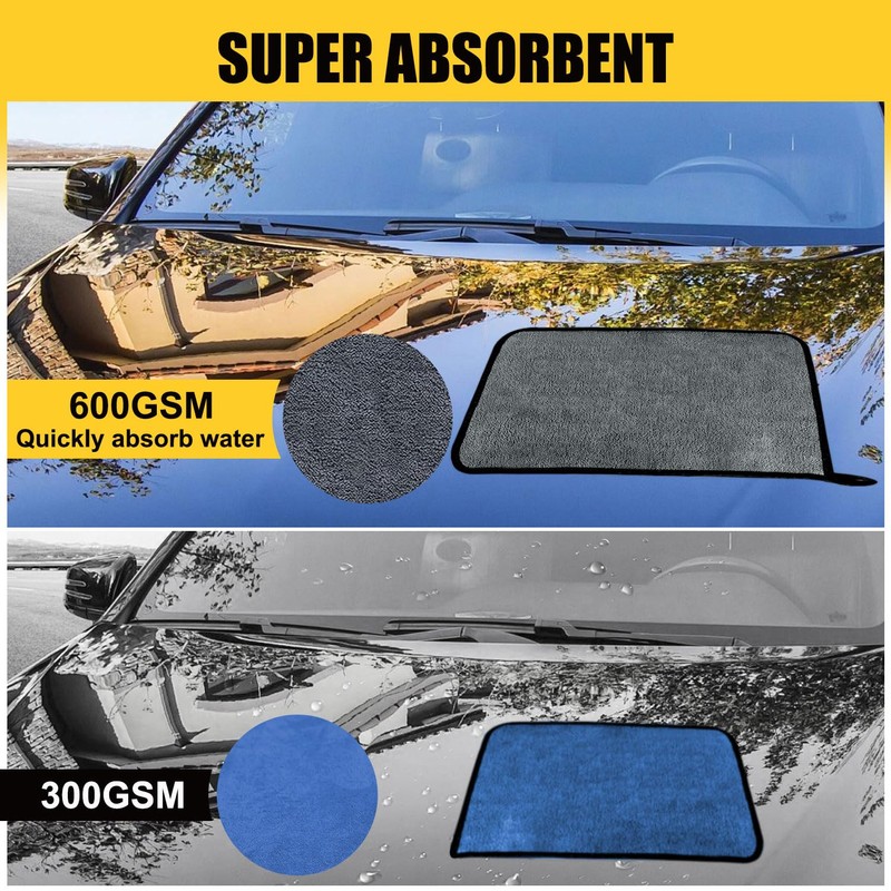 - 【Glänzender Tiefendunst-Finish ohne Kratzer】Die doppelseitigen 600 GSM-trockentuch auto mit 0,4-μm-Fasern säubern präzise, absorbieren Wasser und Wachs ruckzuck und garantieren 100 % fuzzfreie Trocknung. Ideal zum Auftragen von Schnellwachs, Feinpolieren oder Sanieren von Lackschäden – für einen makellosen, strahlenden Glanz