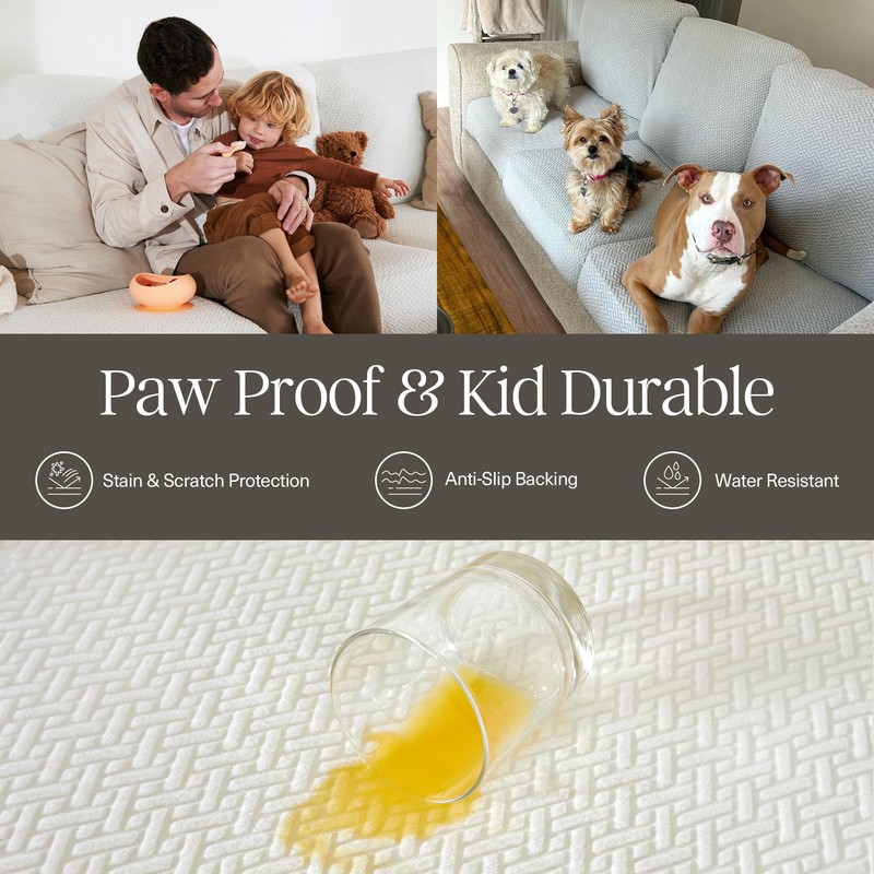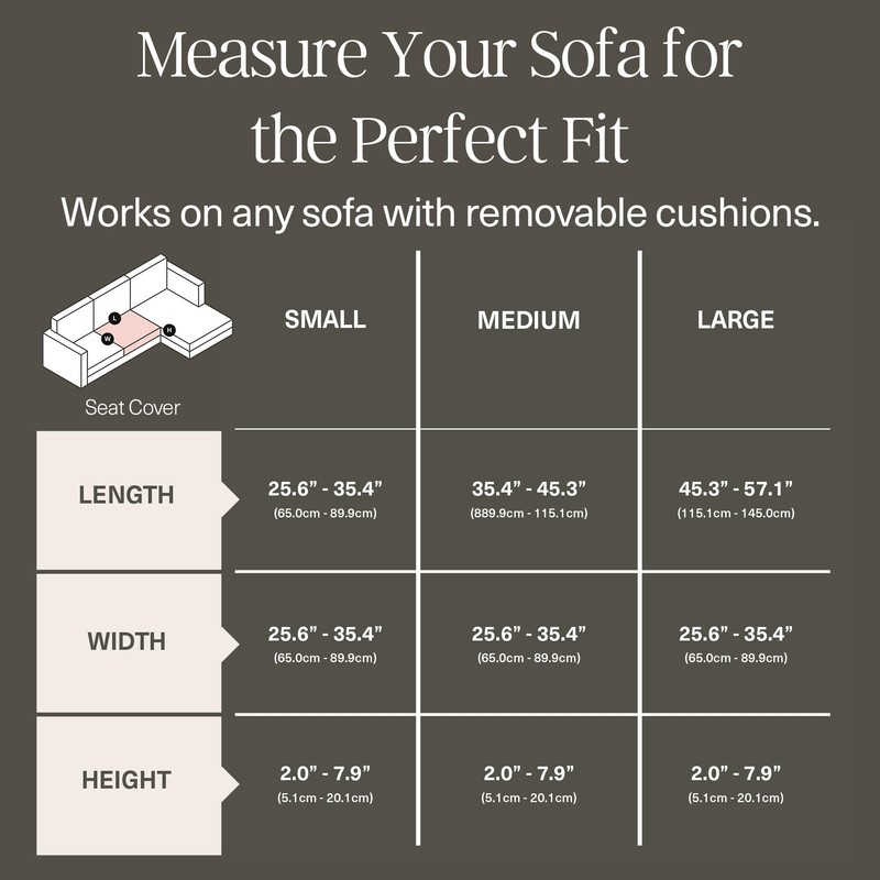 • Clings to Every Curve: Featuring an anti-slip backing to ensure a couch cover that stays in place, even with your furry friend’s playful antics or an energetic kiddie playdate. For a snug and perfect fit, we recommend measuring your cushion and referring to our sizing guide for a sofa cushion cover that will fit like a charm. Enjoy a form-fitting, secure fit with our stretchy couch cushion covers for sectional sofas.