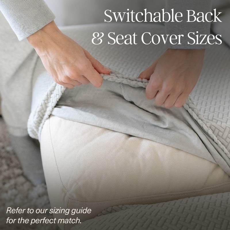 • Quick and Easy Installation: Meet the couch cushion cover that will make the everyday a little easier. Skip the zippers and simply pull the elastic loop around each cushion and give your living room a brand-new look in minutes. No extra hands needed. Explore our collection of back cushion covers, chaise covers, couch seat covers, and pillow covers to enhance your everyday experiences.