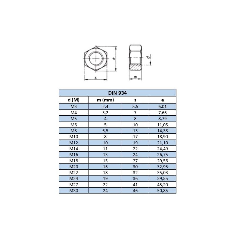 NOLDAR | Hexagon Nuts DIN 934 Metric M30 (Pack of 2) Nuts AISI 304 (A2) Stainless Steel Thread Pitch 3.5 (Standard)
