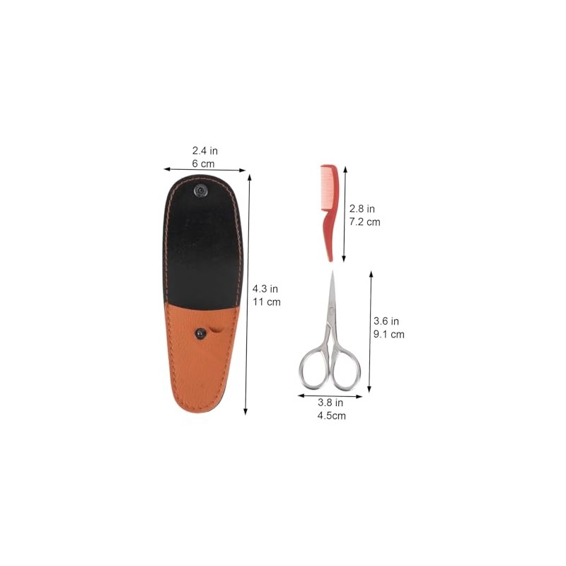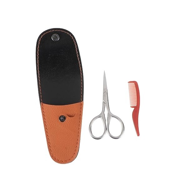 NOLITOY 2pcs Stainless Steel Beard Scissors Set Precision Trimming Shears for Mustache Beard Grooming Includes Brown Leather Case Portable Kit for Men