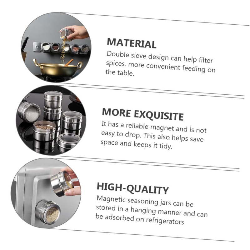 - Magnetic tins for spices--double sieve design can help filter spices, more convenient feeding on the table,magnetic storage tins