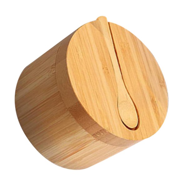 - The seasoning jar is equipped with spoon, so that you can use the wooden spoon to scoop out the right amount of seasoning at any time household salt container